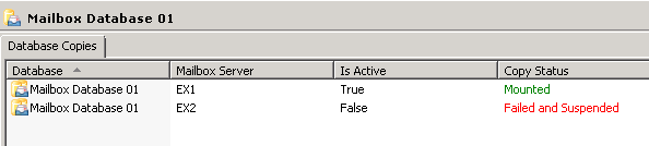 Exchange 2010 DAG with a Failed Database Copy