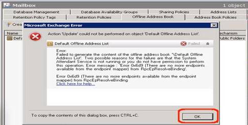 - Here while moving we might get error message (Failed to generate the content of the Offline Address Book)