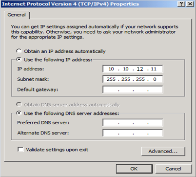 Now open property page of “Internet Protocol Version 4 (TCP/IPv4)” and enter an IP address and subnet mask on the isolated replication subnet. Since this NIC solely is used for replication, seeding and heartbeats, you should not specify any default gateway or DNS servers.