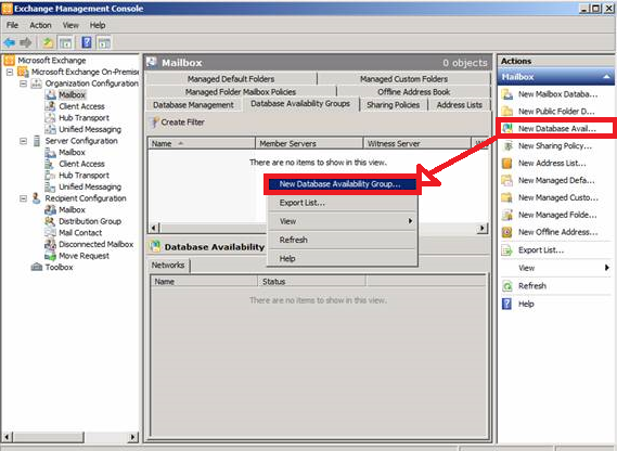 Now open EMC (Exchange Management Console) and click New Database Availability Group as shown below.