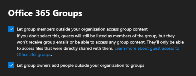 Now here make sure the first & Second options “Let group members outside your organization access group content” is selected.
