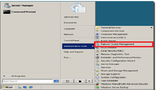 First we need to go to administrative tools and then open Failover Cluster Management Console