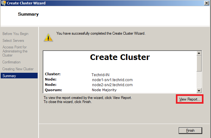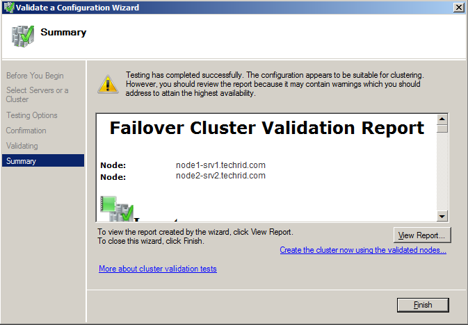 Navigate to C:\Windows\Cluster\Reports directory and open the Validation Report .MHT file