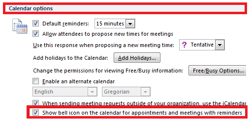 To show the bell icon in the calendar, you’ll have to enable the option first.